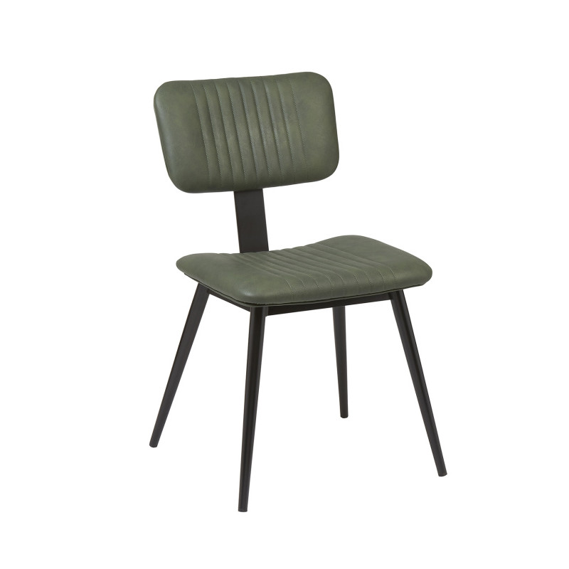 Silla de diseño, ideal para espacios de interiores, cuenta con un sólido armazón de tubo acerado pintado de negro y un cómodo asiento y respaldo tapizados.