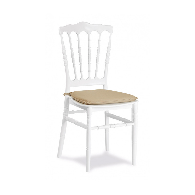 Silla monoblock de exterior, apilable , fabricada al 100% con polipropileno inyectado a gas en color blanco. Esta silla también se puede complementar con cojines para mayor comodidad y estilo.