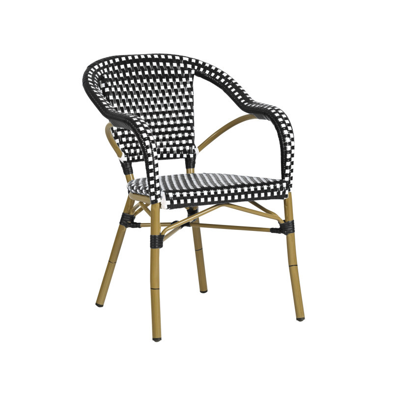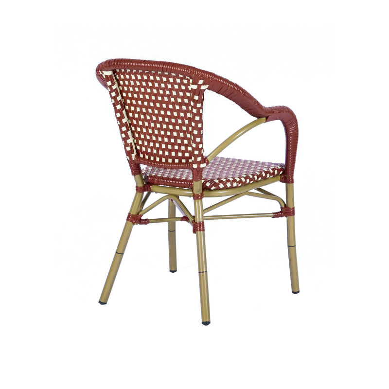 Armazón de aluminio plastificado en color imitación a caña. Médula sintética 100% virgen, no reciclada y tejida a mano.