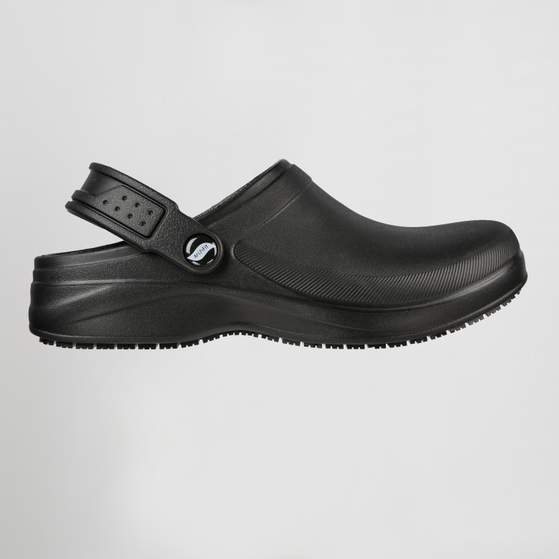 Este zueco antideslizante presenta una parte superior de EVA flexible moldeada con una plantilla contorneada y una correa convertible para el talón.